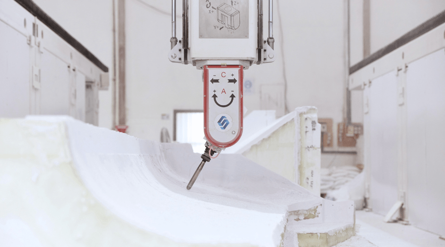 The true potential of CNC in contemporary architecture is fully realised when paired with advanced, high-performance materials. These materials, often lightweight yet incredibly strong, can be precisely manipulated by CNC machines to create innovative building elements. ShapeShift Technologies has been at the forefront of this integration, utilising 5-axis large-format CNC machines to fabricate bespoke geometries from a range of reinforced materials.